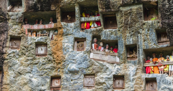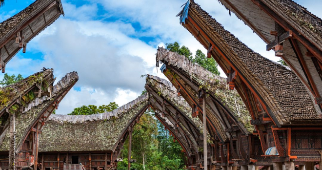 Po zajtrku se bomo odpravili na celodnevno raziskovanje Tana Toraje, dežele bogatih tradicij in starodavnih običajev. Najprej bomo obiskali Kete’ Kesu, eno najbolj znanih torajskih naselij, kjer stojijo izvirne tradicionalne hiše Tongkonan in riževi skednji. Vas je znana tudi po grobnicah kraljeve družine Kete’ Kesu, ki pričajo o pomembni vlogi te skupnosti v zgodovini Toraje. Nato bomo nadaljevali proti kraju Lemo, znanemu po visečih grobnicah, v katere so v skale izklesane vdolbine s kipci Tau-Tau, ki predstavljajo umrle. Sledil bo obisk Londe, naravne jame, kjer so shranjene krste in okostja prednikov, kar daje kraju mistično vzdušje. Kosilo bomo imeli v lokalni restavraciji v Rantepao, nato pa bomo odkrivali še Bori, arheološko območje z mogočnimi megaliti, ki tukaj stojijo že stoletja. Pot bomo nadaljevali do Sa’dan Tobarane, kjer domačini še vedno izdeljujjo značilne torajske tkanine, in do vasi Pallawa, s čudovitimi tradicionalnimi hišami in riževimi skednji. Preden se vrnemo v hotel, se bomo sprehodili še skozi živahno tržnico Pasar Bolu, znano po prodaji vodnih bivolov, ki imajo v torajski kulturi posebno simbolno vrednost. Večerja v lokalni restavraciji in nočitev.