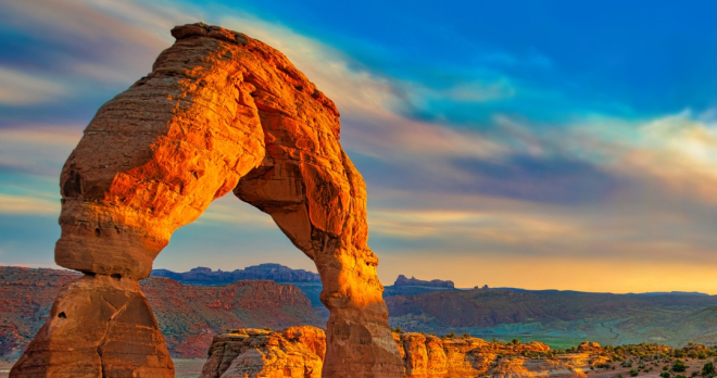 Zajtrk v hotelu. Dan bomo namenili raziskovanju treh izjemnih naravnih čudes v okolici Moaba. Najprej se bomo odpravili proti razgledni točki Dead Horse Point, ki velja za eno najlepših panoram na svetu. Z razglednega platoja se odpira osupljiv pogled na mogočne kanjone, ki jih je skozi tisočletja izdolbla reka Colorado, ter na prostrane rdeče planote, ki se raztezajo daleč proti obzorju. Nadaljevali bomo v Narodni park Canyonlands, eno največjih zavarovanih območij v ameriškem jugozahodu. Tu se bomo sprehodili do razglednih točk, od koder se razkrivajo veličastne soteske, kamnite formacije in globoko izdolbljene doline, ki pričajo o mogočni sili narave. Popoldne bomo obiskali še Narodni park Arches, svetovno znan po več kot dveh tisoč naravnih kamnitih lokih, ki so nastali z erozijo vetra, vode in časa. Med najbolj znanimi so Delicate Arch, Landscape Arch in Double Arch, ki jih bomo občudovali med panoramsko vožnjo in krajšimi sprehodi. Po ogledu povratek v Moab, namestitev v hotelu in nočitev.